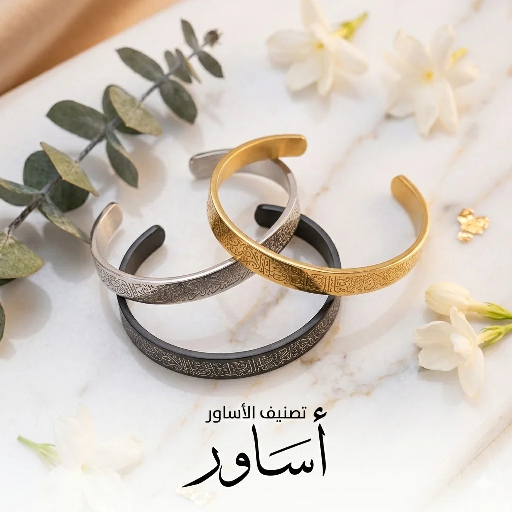 أساور ميفا جولري.. حكاية أناقة محفورة بدقة. استكشفي مجموعتنا الاستثنائية من الأساور التي تجمع بين سحر الخط العربي وحداثة التصميم. سواء كنتِ تبحثين عن بريق الذهب الفاخر، أو كلاسيكية الفضة اللامعة، أو تميز الأسود الملكي، فإن مجموعتنا تلبي كافة الأذواق. كل قطعة مصممة بعناية لتكون بصمة تميز تزين معصمك في كل الأوقات.